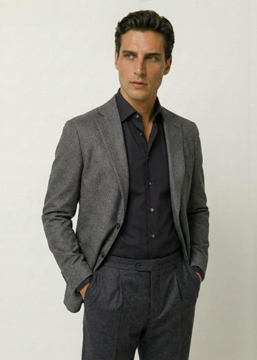 Our Flannel Blazer is sewn in the finest wool quality from Italian Vitale Barberis Canonico in a Pure WV Super 120'S extra fine merino wool. The fine smooth (worsted) yarn is spun from combed long-fiber wool, which gives the fabric a super soft surface and ensures long durability.