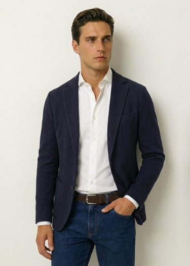 Knitted Wool Cotton Blazer, Unstructured, Navy