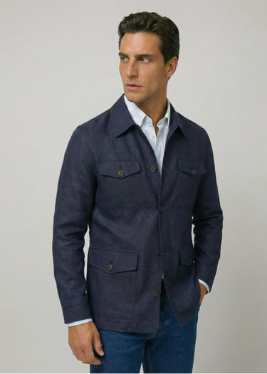 Appearance-An-Ivy-Linen-Safari-Jacket-Jakke-Shirt-Skjortejakke-Overshirt-Navy-Hoer-Lommer-Knapper-Herre-Maend-Men-Field-Navy-Blå