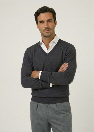 Merino Pullover V-Neck, Graphite