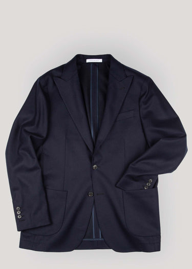 Flannel Blazer Peak Lapel, Unstructured, Navy