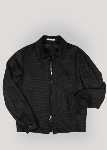 Flannel Bomber Jacket, Black Gray Houndstooth