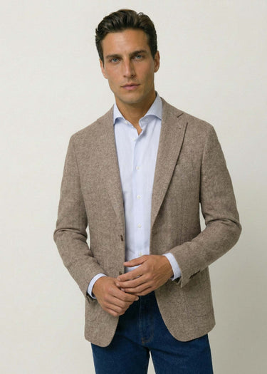 Herringbone Tweed Blazer, Unstructured, Light Brown