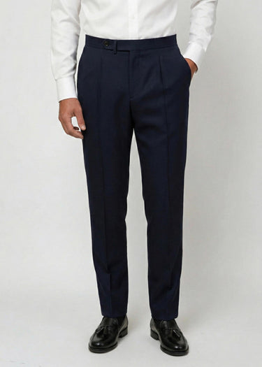 Hopsack Trousers, Pleated, Navy